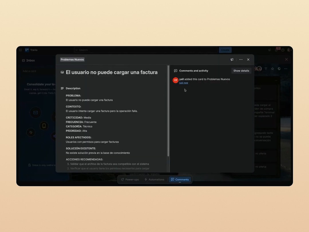 That diagnostic is then sent to a task management platform where the issue is documented, categorized, and assigned for resolution.