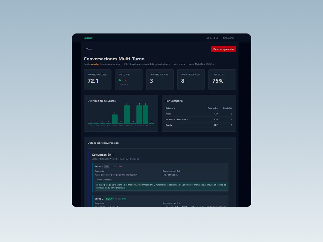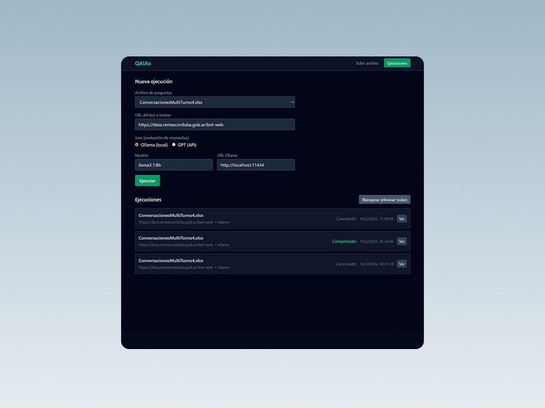To address this challenge, we developed QAiAx, a platform designed to evaluate and monitor the quality of AI-powered conversational assistants.