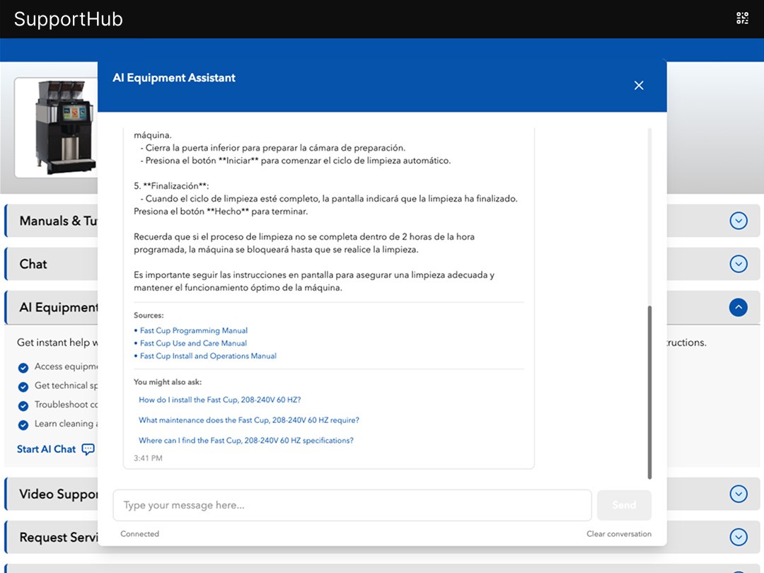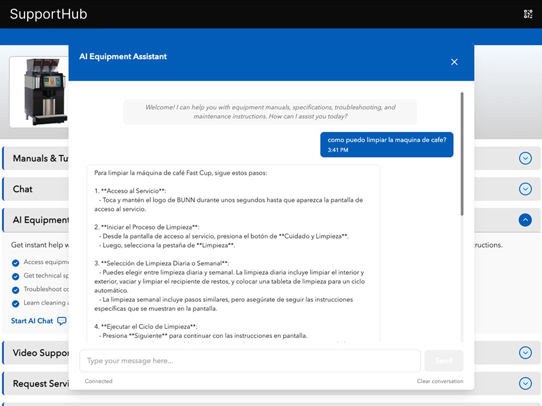 The Smart Brew Assistant transforms static PDF manuals into an intelligent conversational support experience.
